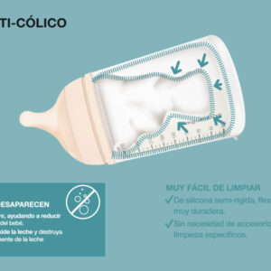 Biberón diseñado para reducir los cólicos del lactante, ya que actúa de la misma manera de que las glándulas mamarias, por eso también es el biberón ideal para aquellas mamás que opten por la lactancia mixta.