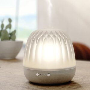 Es un difusor ultrasónico de aceites esenciales diseñado con cerámica y madera noble. Presenta luz y efecto bruma aromática a la vez que difunde aceites esenciales para crear un ambiente de relax y tranquilidad basado en los principios de la aromaterapia.